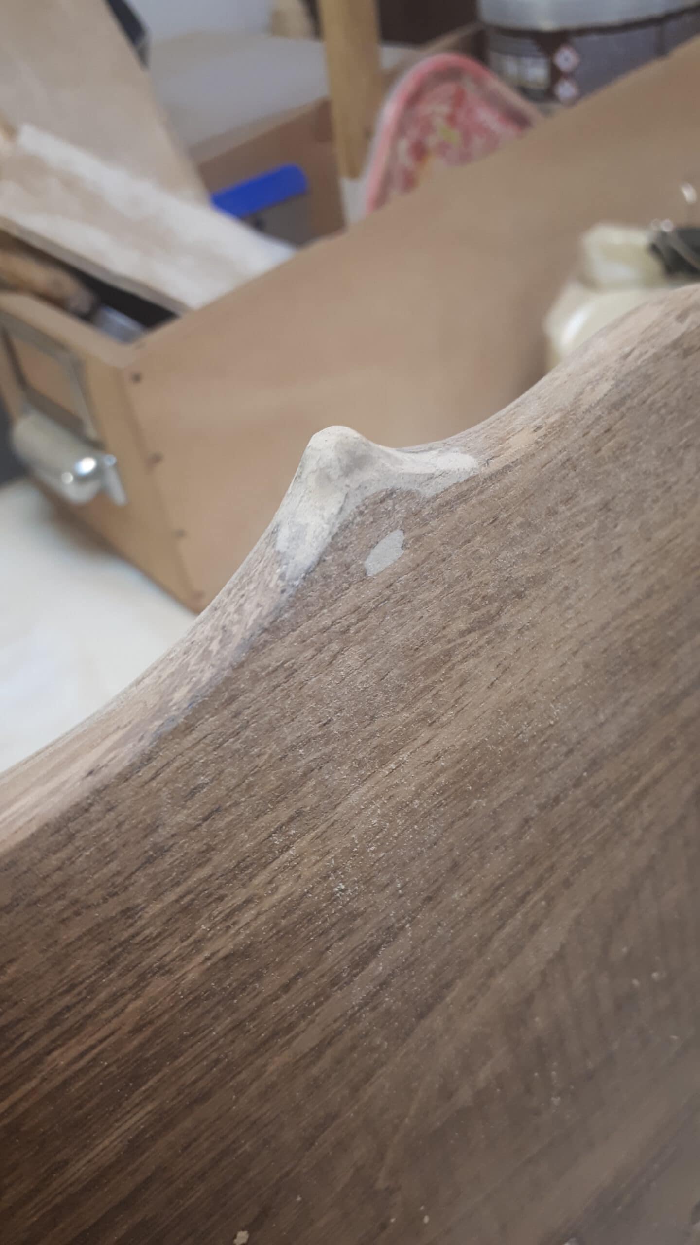 En revanche, si le professionnel travaille sur un meuble déjà vernis ou peint, ses compétences devront être plus larges : il décape et répare, applique un traitement, bouche d’éventuels trous et fissures, recolle des assemblages déboîtés, rétablit la solidité d’un vieux placage ou d’une sculpture cassée, lisse le bois, rétablit le bon fonctionnement des ouvertures et fermetures, etc.