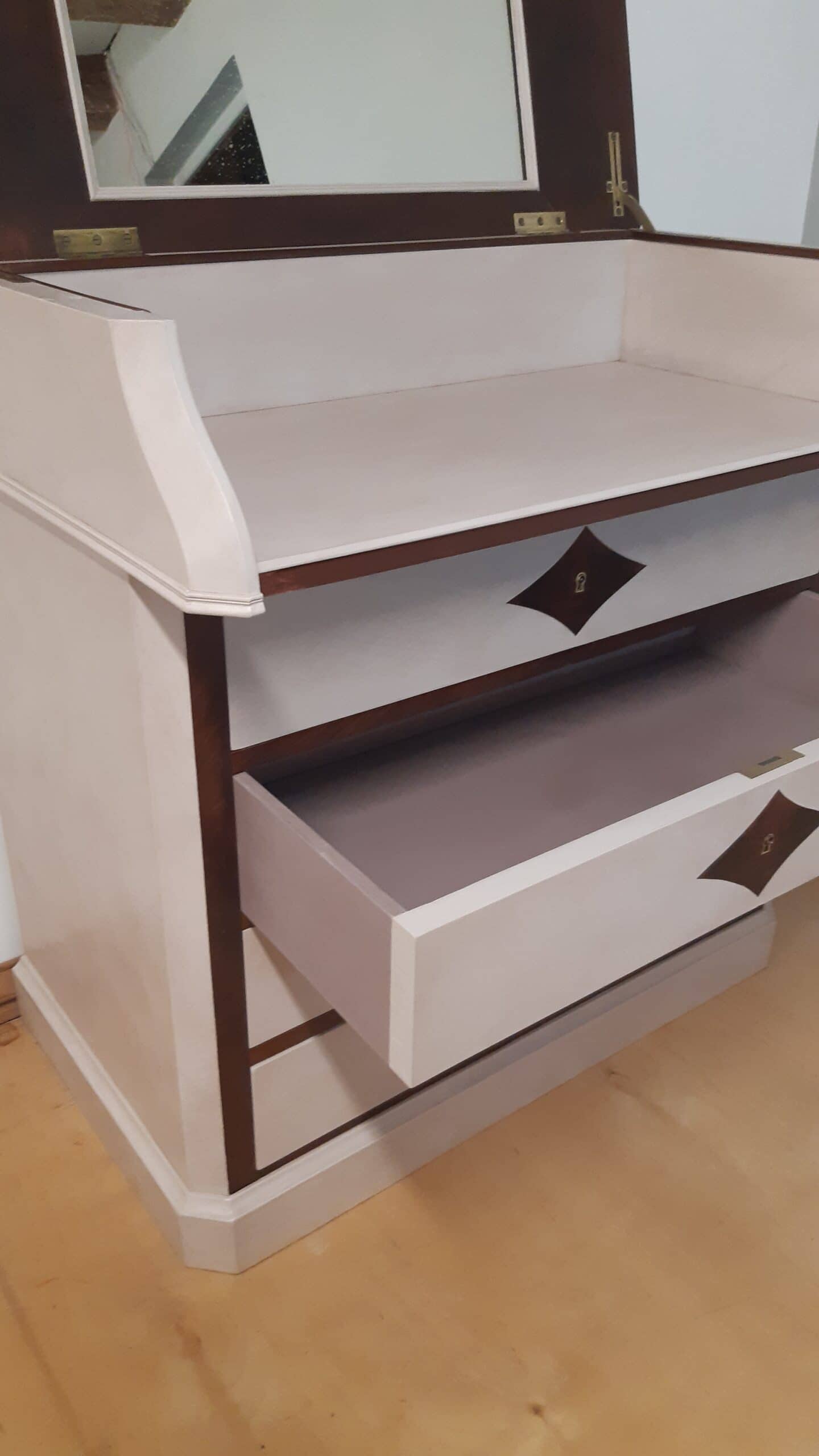 « Meuble utilitaire » et « œuvre d’art » : voilà l’équation qui fonctionne ! Le désir affirmé de réunir le travail minutieux des ébénistes, sculpteurs et peintres sur mobilier.